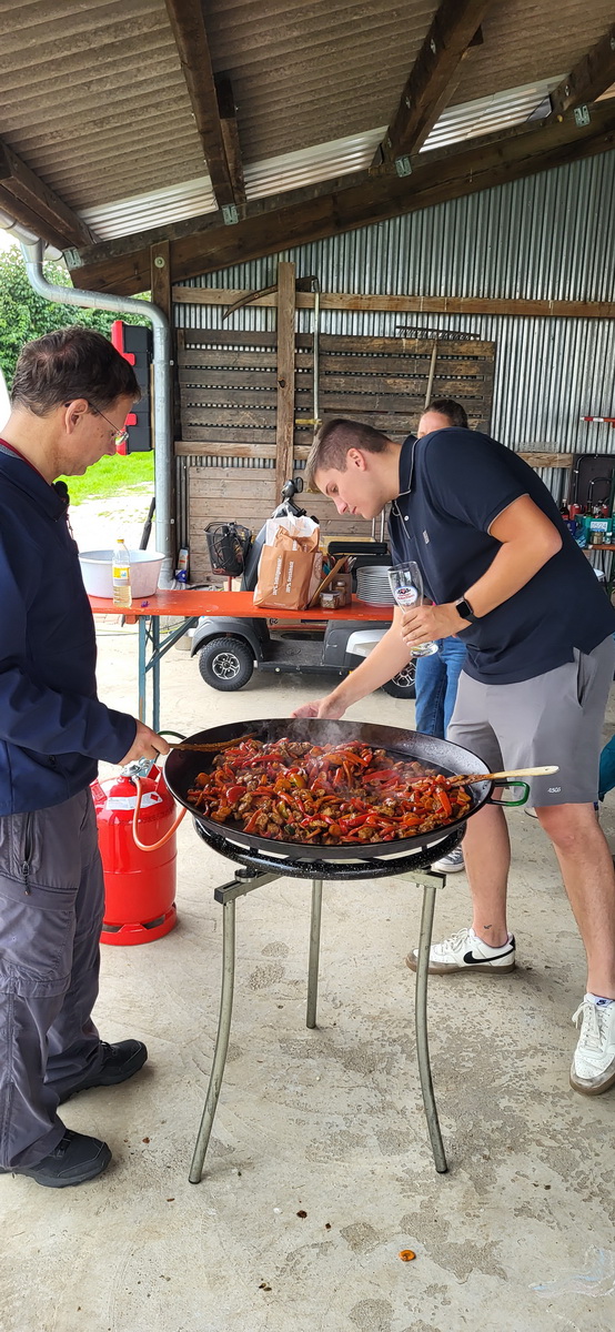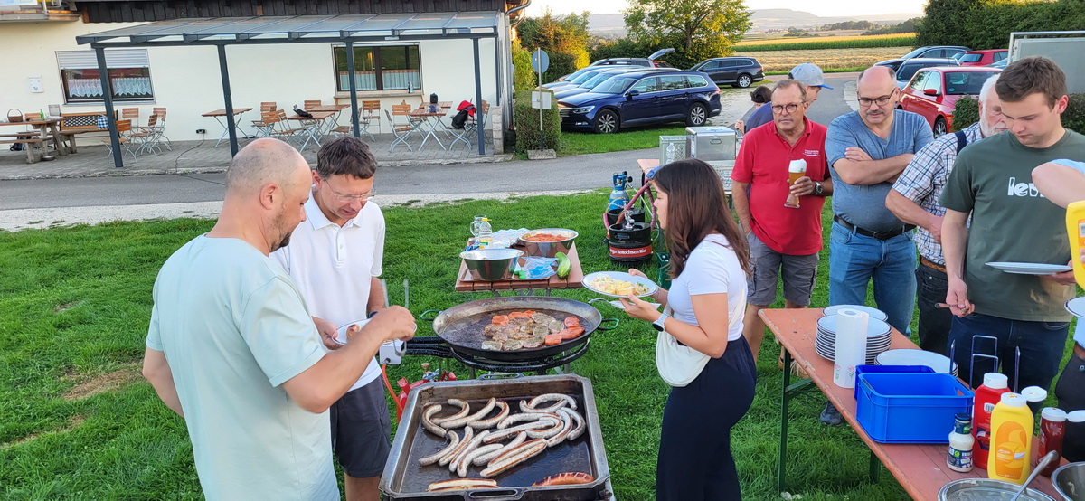 07.08.25 Ein sehr schöner und sonniger Flugtag ging früh los und ging bis spät nachmittags. Auch am Donnerstag war teilweise ordentliche Thermik so, dass einige Umschulungen auf neue Flugzeugmuster durchgeführt wurden und diese gleich mit einigen längeren Flügen geübt werden konnten. Abends war es dann ein Abendessen in großer Runde, denn es gab etwas zu feiern: Seit 10 Jahren bereits fährt die FGN nach Ellwangen ins Fliegerlager! Für dieses Jubiläum wurde ein Grillfest organisiert, wobei die Ellwanger Freunde großzügigerweise die Getränke und die Beilagen gestellt haben während die FGN-Kochmannschaft für das Grillgut zuständig war. So ging ein schöner sonniger Tag mit sehr geselligen und gut gemischten bayerisch-schwäbischen Kleingrüppchen um das Feuer und am Vorfeld zu Ende.
