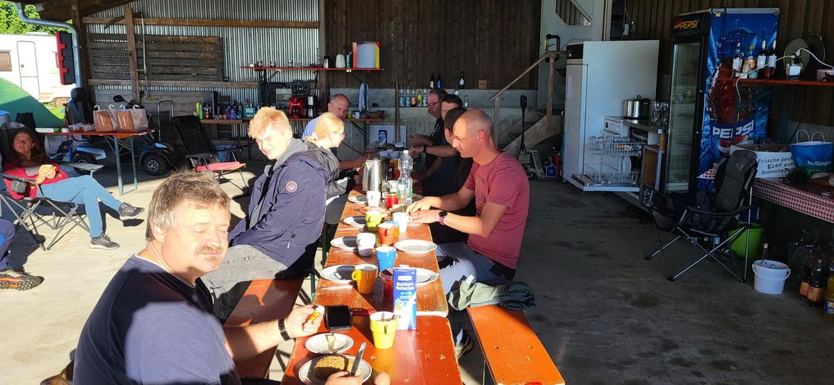 08.08.25 Der letzte Tag war erneut ein sehr schöner und wurde direkt von früh an gut genutzt. Am Nachmittag war gute Thermik angesagt, die sich aber leider so nicht materialisiert hat. So haben unsere Streckenflieger lange gehadert und sind früher oder später erst losgekommen. Die mäßige Thermik hat aber den Weg für mehrere kurze Flüge geebnet, was direkt von Paul genutzt wurde, um seine ersten drei Flüge alleine noch vor dem Mittagessen zu absolvieren! Auch nachmittags war das Wetter stabil schön, was dazu geführt hat, dass sowohl Christian als auch Philipp einen Überprüfungsflug durchführen konnten, um ihre Passagierberechtigung abzuschließen. Die Abendstunden wurden dann noch genutzt, um die meisten Flieger abzubauen und in ihre Anhänger zu räumen, sodass die Heimreise am Samstag schon gut vorbereitet war. Abends wurden wir dann von einigen Ellwangern besucht, um 43 leckere Fleischpflanzerl mit diversen Salaten zu verputzen.