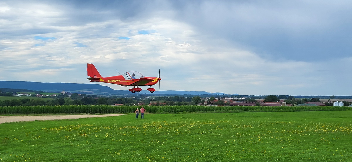 05.08.25 Ein abwechslungsreicher Flugtag begann mit einem Briefing, das wechselhaftes Wetter versprach. Daher wurde schnell aufgebaut, um noch einige Starts zu machen, die auch gut genutzt wurden, denn nach einem letzten Überprüfungsflug konnte Nils seine ersten drei Alleinflüge absolvieren! Kurz nach einem standesgemäßen Empfang am Boden mit Strauß und Thermikgefühl begann dann auch schon der erste Regenschauer des Tages, also gerade noch rechtzeitig! Nach einem Abwarten des Schauers wurde dann mithilfe der Ellwanger Winde auch während der Mittagspause fleißig weitergeschult, ehe dann am frühen Nachmittag der Wind merklich auffrischte und es bedrohlich nach Gewitter ausschaute. Hierfür wurden dann sämtliche Flieger sicherheitshalber in die Halle geräumt, jedoch hatten wir Glück, das Wetter zog vorbei und wir konnten noch einige Starts machen. Den Abschluss des Flugtages haben dann Werner und Paul gemacht, die bei einem schönen Abendflug noch die letzten Sonnenstrahlen ausgenutzt haben.