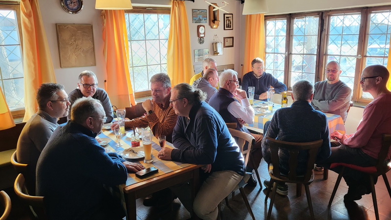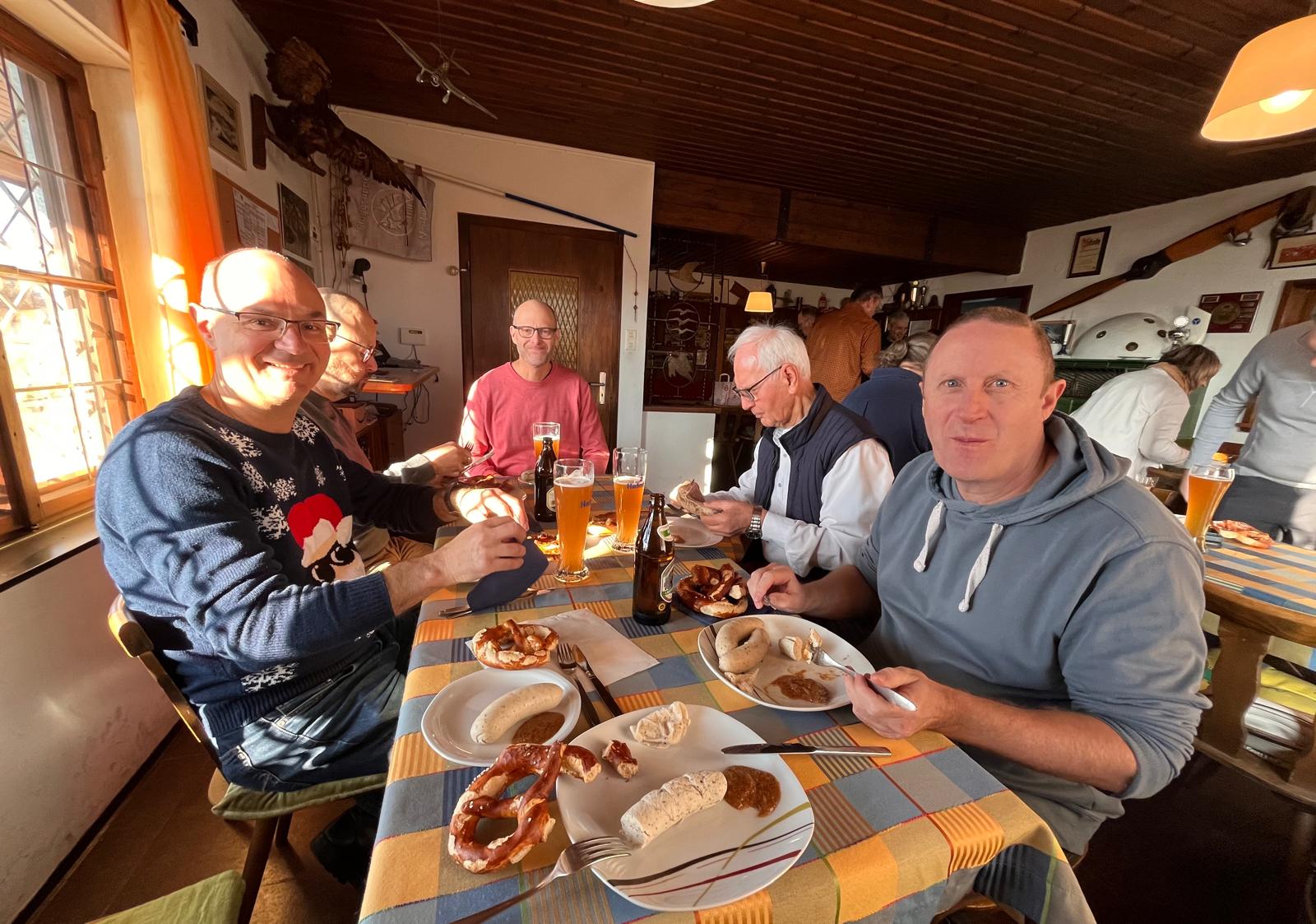 Kurz vor Jahresende, nach all den festlichen Tagen mit bestimmt ausreichend Kalorien, war es schon fast etwas verwunderlich, dass ein Weißwurstfrühstück zusammen ging! Mit viel weiblicher Unterstützung war das Fliegerheim dann gut gefüllt und es gab leckere Weißwürste mit frischen Brezen. Natürlich durfte der Sektempfang nicht fehlen und so wurde es wieder in lustiges und unterhaltsames Zusammenkommen. Auch die Bewunderung des aktuellen Bauzustands der neuen Halle nicht zu kurz, wo immer wieder gute Fortschritte gemacht werden