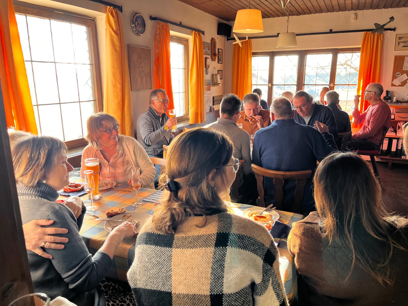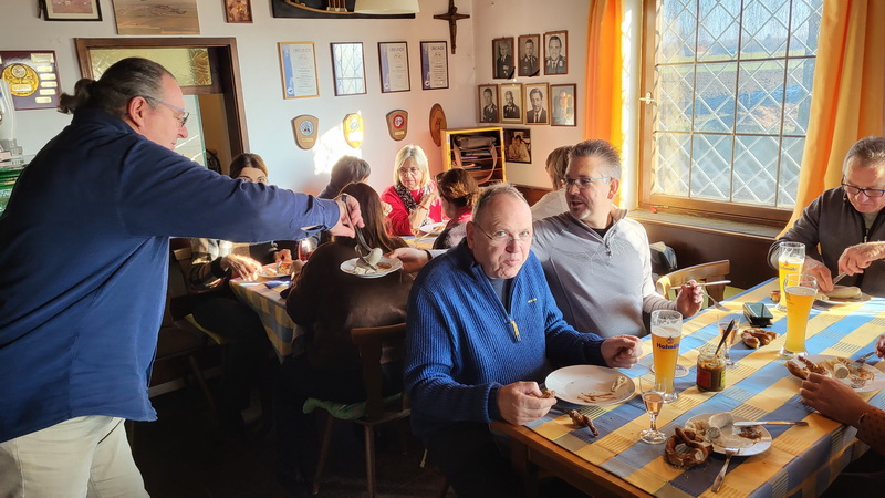 Kurz vor Jahresende, nach all den festlichen Tagen mit bestimmt ausreichend Kalorien, war es schon fast etwas verwunderlich, dass ein Weißwurstfrühstück zusammen ging! Mit viel weiblicher Unterstützung war das Fliegerheim dann gut gefüllt und es gab leckere Weißwürste mit frischen Brezen. Natürlich durfte der Sektempfang nicht fehlen und so wurde es wieder in lustiges und unterhaltsames Zusammenkommen. Auch die Bewunderung des aktuellen Bauzustands der neuen Halle nicht zu kurz, wo immer wieder gute Fortschritte gemacht werden