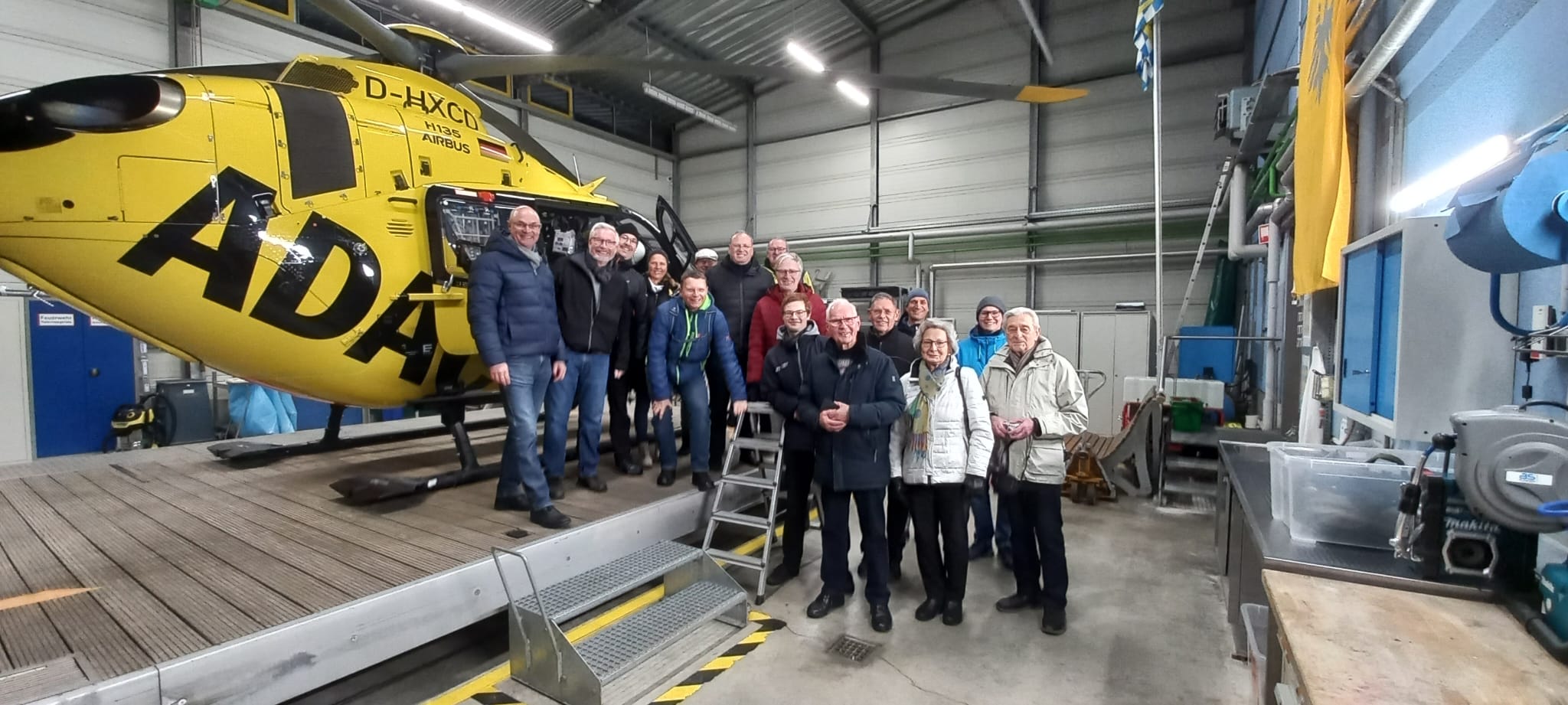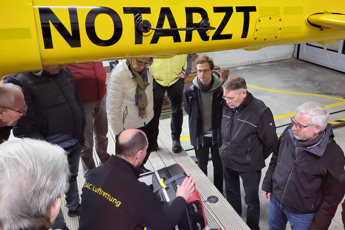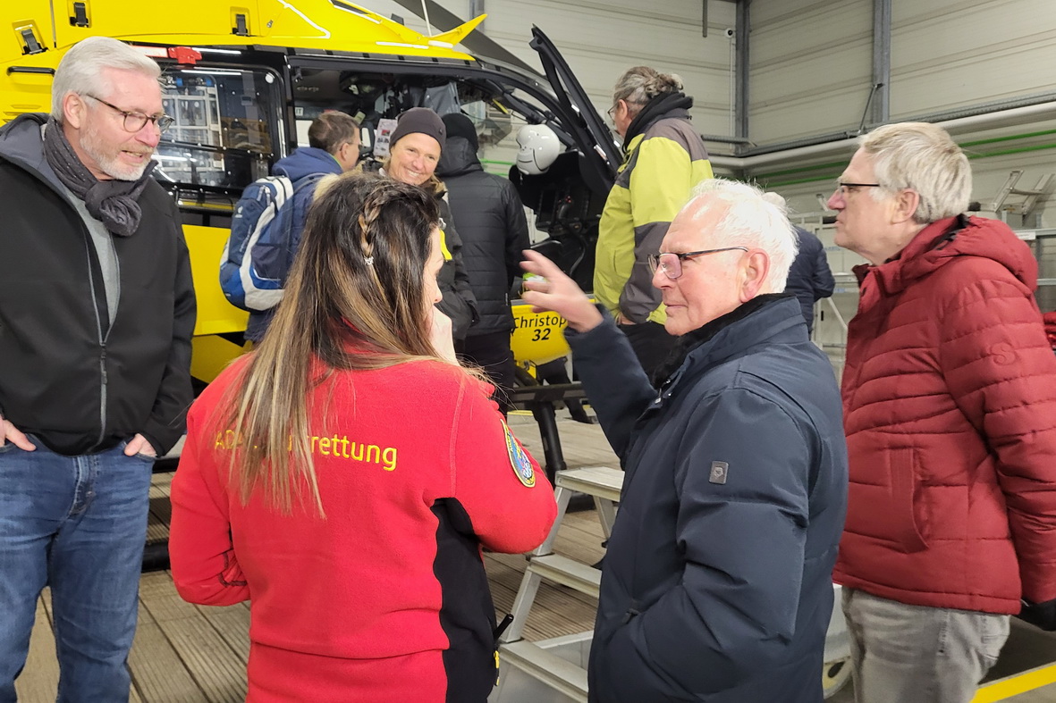 Rettungspilot Bernhard Stadler stellte uns seine Airbus H135 bis ins kleinste Detail vor. Wenn man jeden Tag 3-4 Einsätze fliegt, kennt man den Hubschrauber natürlich auch bis ins kleinste Detail. Auch die Notfallsanitäterin Julia stand Rede und Antwort und freute sich, den ehemaligen Patienten wieder gesund und munter zu treffen. Auch sonst erfuhren wir viel über den täglichen Ablauf des Flugbetriebs, die Wartungsanforderungen, die technischen Besonderheiten, usw.