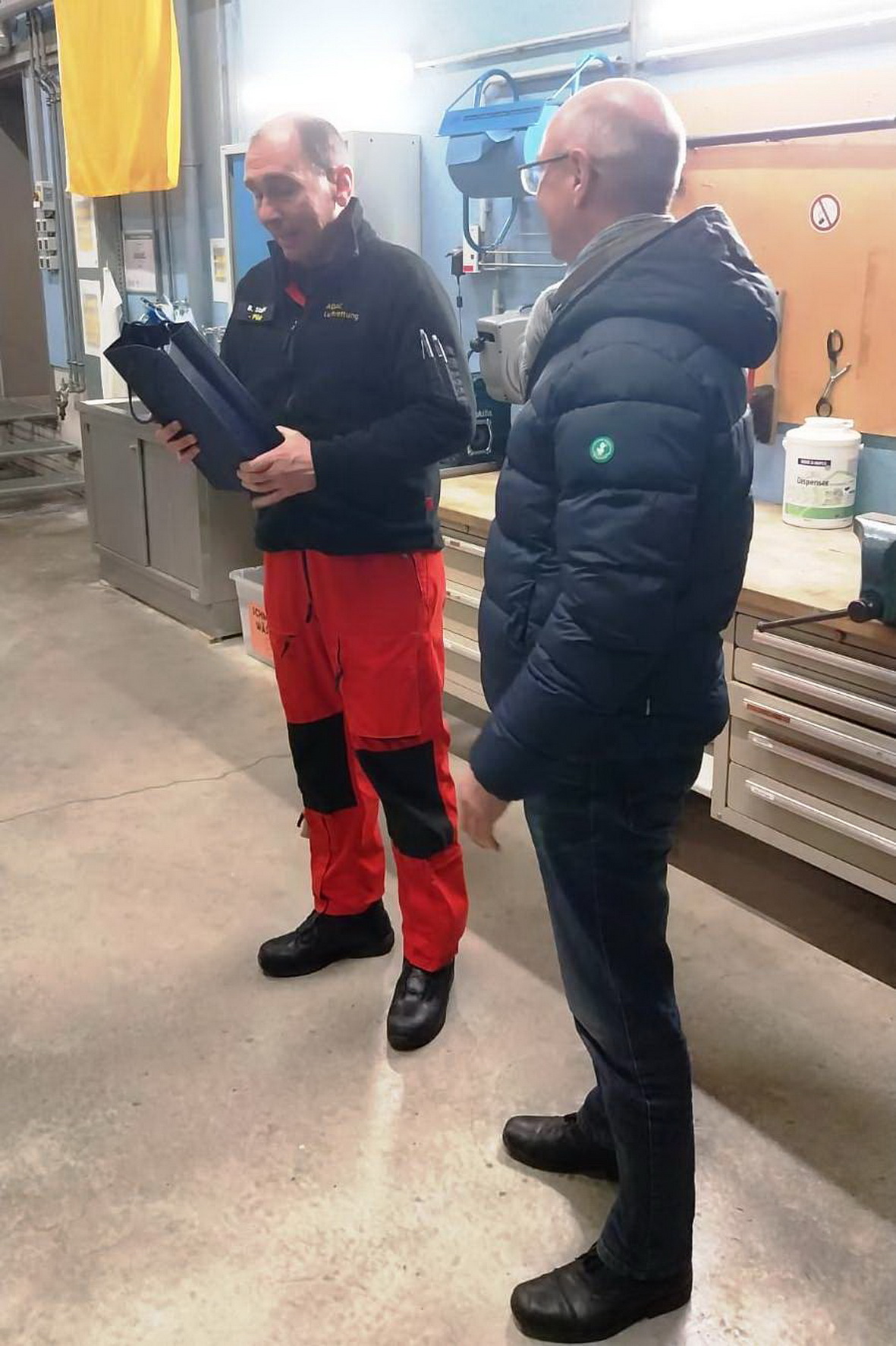Rettungspilot Bernhard Stadler stellte uns seine Airbus H135 bis ins kleinste Detail vor. Wenn man jeden Tag 3-4 Einsätze fliegt, kennt man den Hubschrauber natürlich auch bis ins kleinste Detail. Auch die Notfallsanitäterin Julia stand Rede und Antwort und freute sich, den ehemaligen Patienten wieder gesund und munter zu treffen. Auch sonst erfuhren wir viel über den täglichen Ablauf des Flugbetriebs, die Wartungsanforderungen, die technischen Besonderheiten, usw.